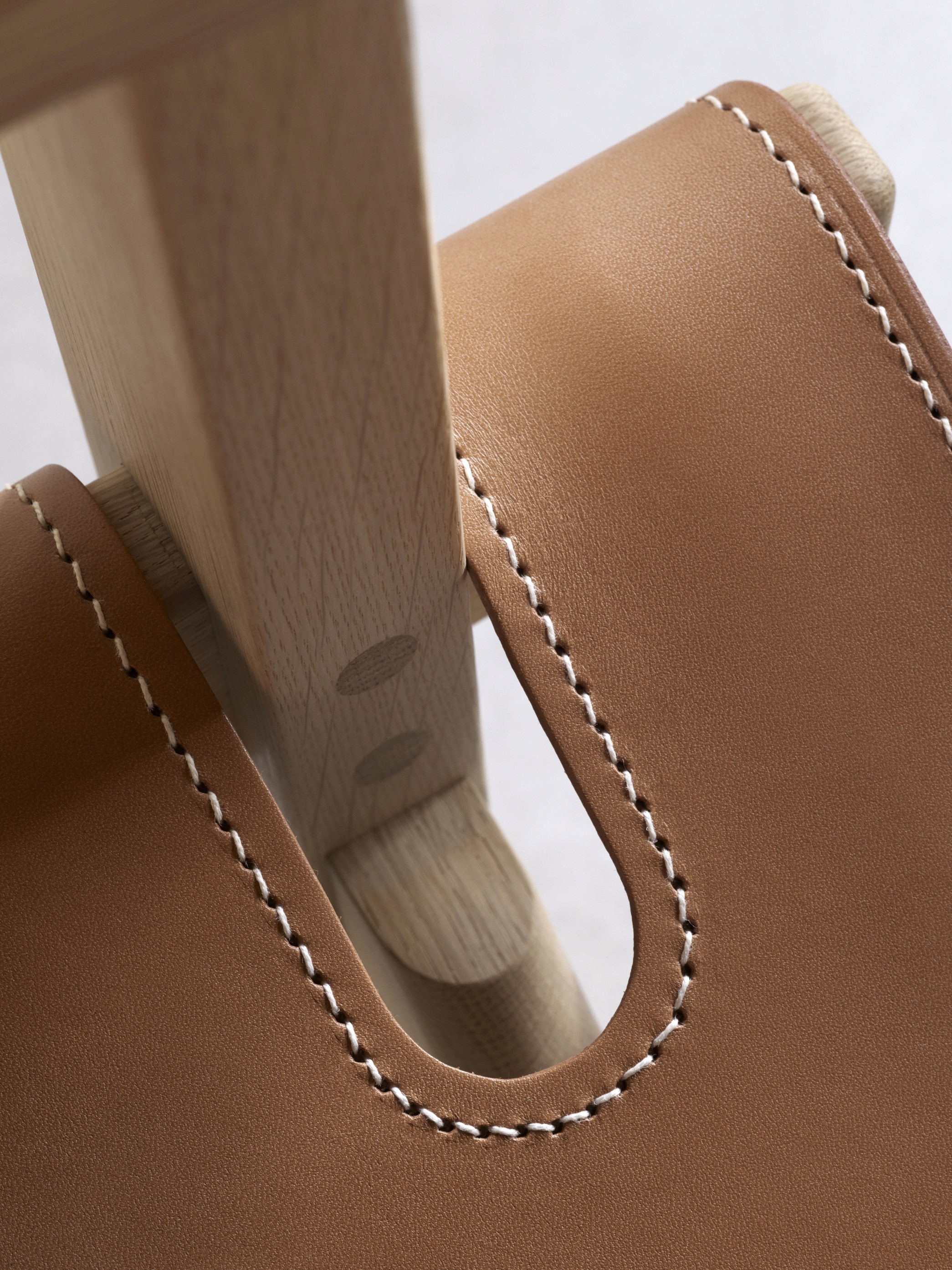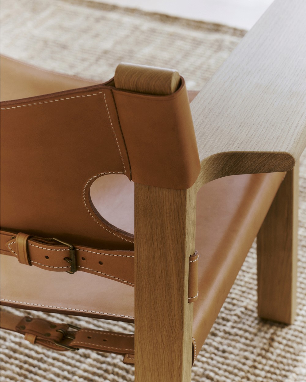 The Spanish Chair (Model 2226) was born from a transformative journey through Andalusia, Spain, where the designer was captivated by traditional Moorish-influenced seating featuring robust wooden frames, heavy leather, and remarkably wide armrests. Returning to Denmark, Mogensen reinterpreted this historic form by stripping away the ornate, traditional carvings and distilling the silhouette into a pure, geometric expression aligned with Danish Modernist principles. Debuting at the Copenhagen Cabinetmakers’ Guild Exhibition that same year, the final design replaced traditional dark woods with solid, light oak and utilized thick saddle leather secured by visible brass buckles.